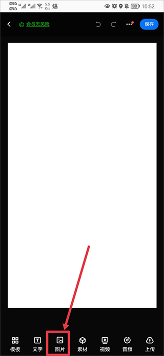 若是在空白画布上自主创作,直接点击“图片”元素,同样可从相册中选取并导入本地图片进行编辑。