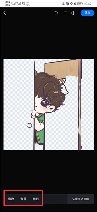 从手机相册中选择需要处理的照片,系统将自动完成智能抠图,随后可自由调整描边、背景及阴影的颜色,打造个性化效果。