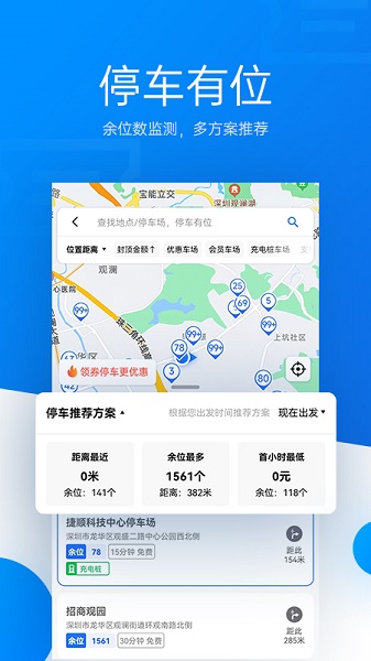 内置导航功能,能够精准引导用户快速找到目标停车场。
