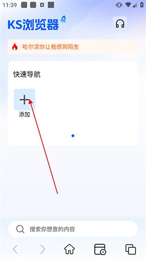 进入主界面后点击【添加】按钮,系统跳转至快捷入口管理页,支持批量添加常用站点。