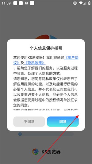 将ks浏览器安装包下载完成后,双击运行,进入引导页后点击【同意】开始初始化。
