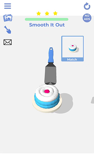 所有装饰动作均带细腻音效反馈,如刮刀轻刮、裱花挤出、撒糖簌簌声