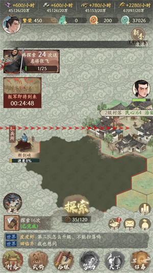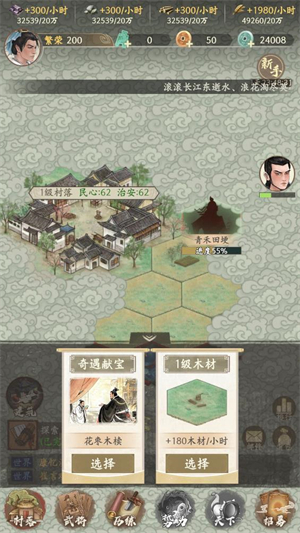 山林、驿站、古道之间,随机浮现形形色色的奇遇或得良将投效,或获秘卷残章,又或触发限时战事,每一次选择都悄然改写势力走向。