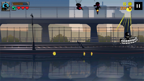 通过方向键或触摸滑动控制火柴人移动与跳跃,长按可蓄力跃升