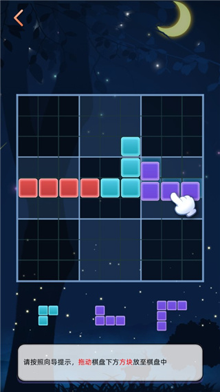 拖动模式提供更直观的空间决策,从底部三选一方块入手,自由填满横竖行列即可触发清除,适合喜欢掌控节奏的玩家。