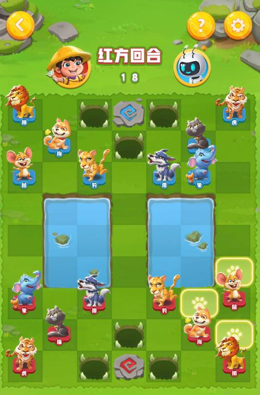 内置教学关卡,通过情景化任务讲解“象吃狮”“鼠入河”等关键规则,直观易懂。
