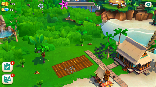 可自由布局岛屿空间,拖拽式建造模式支持个性化农庄设计,包括吊脚屋、贝壳小径与珊瑚围栏