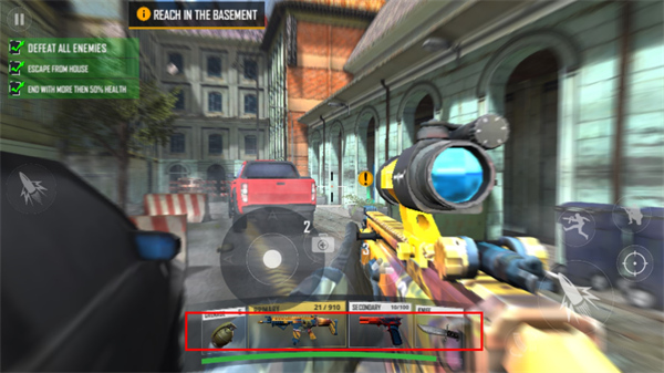 支持多武器自由切换与实时配件改装,包括突击步枪、狙击枪、霰弹枪及战术手雷等装备