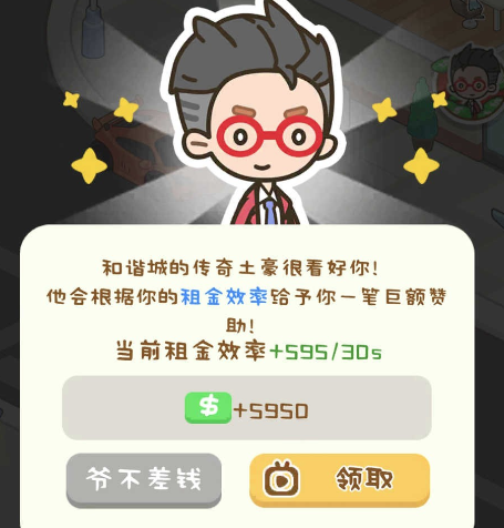基础操作以点击收租为核心,长按加速收取,双击触发暴击收益