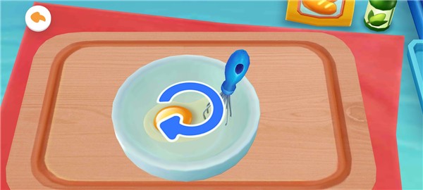接着打碎鸡蛋,并在屏幕上快速滑动完成搅拌动作。