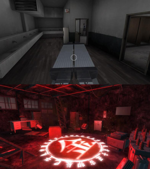 从地图最左侧楼梯上至4楼,开门后进入泳池区域,展开女鬼BOSS战。行进时注意L型铁杆方向:平行可通行,交叉则受阻。若遇死路,原地360度旋转必能找到可行路径。抵达泳池对面关闭水闸,于地面拾取“水之牌”,再从侧门返回4楼大厅。