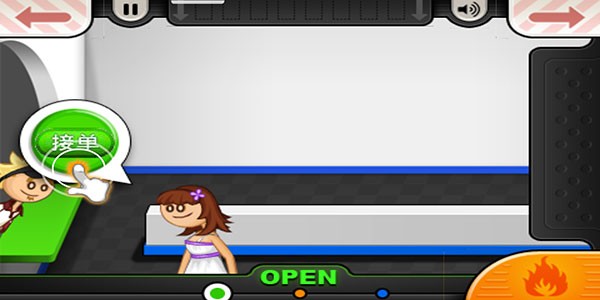 进入游戏后,首先来到点单台界面,点击左侧的绿色按钮接收顾客订单。