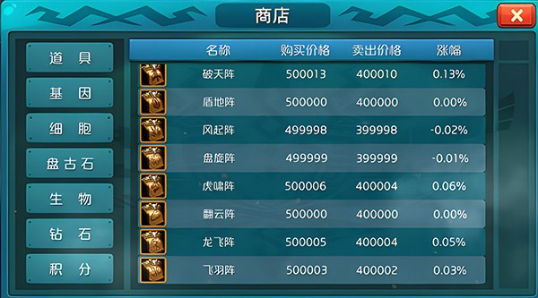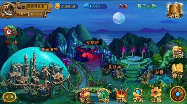 钻石则属于高价值交易货币,主要用于市场购买其他玩家出售的稀有生物或特殊道具。其主要来源为充值(约1钻石=0.1元人民币)及出售自有生物被他人购入所得。