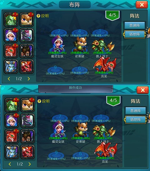 盾地阵强化特定位置减伤,其中5号位享受25%伤害减免;翻云阵侧重前排防护与后排提速;龙飞阵提供多维度定向加成,覆盖法抗、护甲、特攻与速度;飞翔阵赋予全员20%速度提升;虎啸阵与风起阵聚焦伤害结果增强;盘旋阵均衡提升生存与机动性;破天阵则大面积提升前六位输出能力。