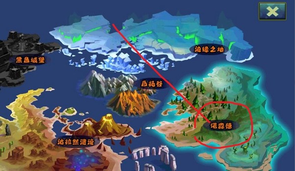 点击右上角地图进入区域选择界面,初期推荐前往诺森德区域。