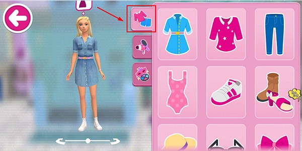 右侧的衣服图标用于更换芭比的上衣、裙子等服装。