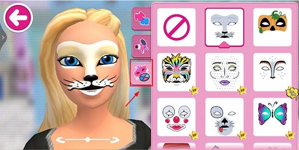 右下角的选项则提供多种妆容选择,让芭比焕发不同魅力。