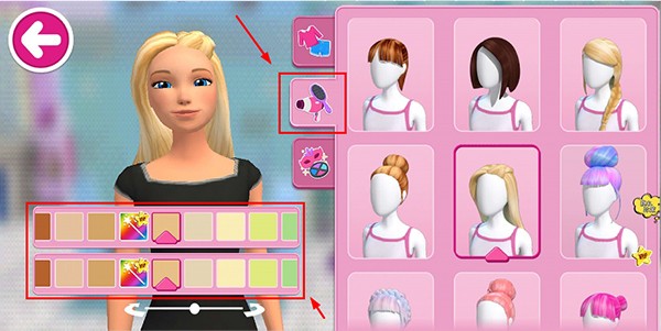 中间偏右的图标支持调整芭比的发型与肤色,打造个性化形象。