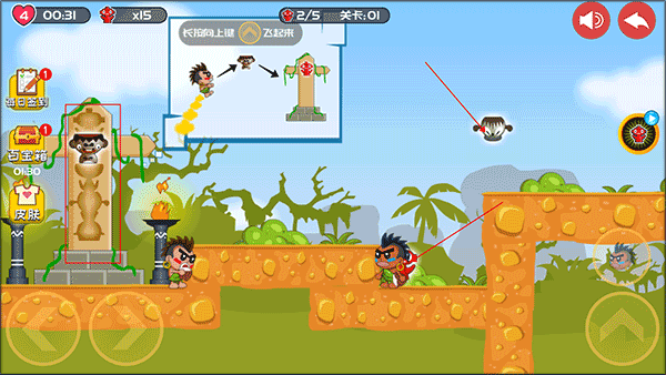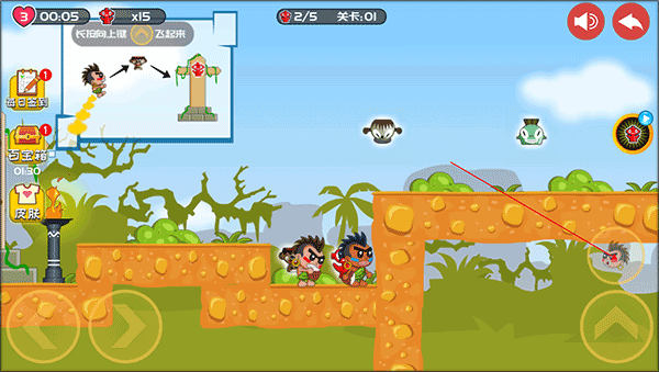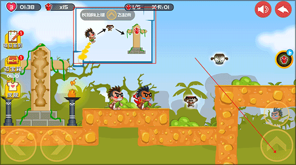 下载并安装屁王兄弟双人版后,进入游戏界面,长按指定按键即可让角色腾空飞行。