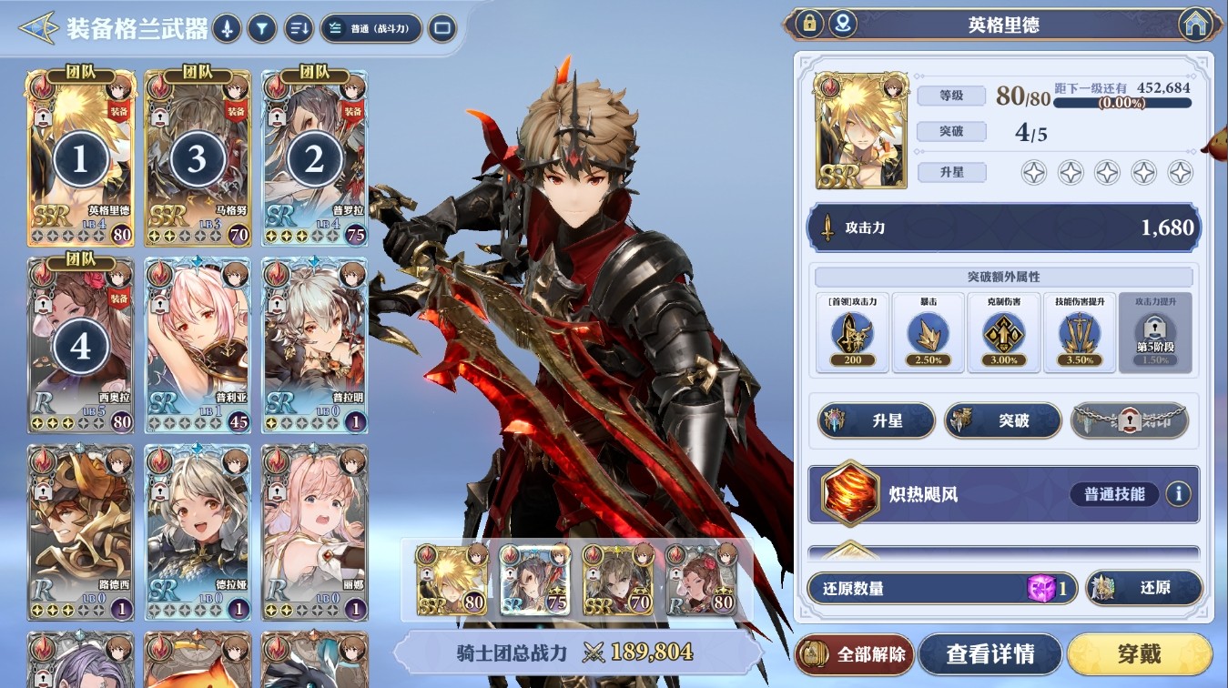 格兰武器最多可装备四件,随角色成长逐步解锁装备槽位。首槽装备决定角色外观形态,且支持拖拽调整位置。同一件格兰武器无法重复装备。每件格兰武器均配备专属普通技能与必杀技,部分还附带被动效果,升星后可解锁额外附加能力。