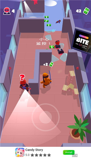 潜行大师中文版是一款趣味十足的休闲闯关手游,玩家将化身为一名身手敏捷的刺客,在重重戒备的密室中悄然穿行。游戏要求你巧妙避开敌人视线,从背后悄然接近目标,借助各类道具与环境掩护完成潜入任务。整体采用精致卡通风格的画面,视觉体验轻松又富有代入感。