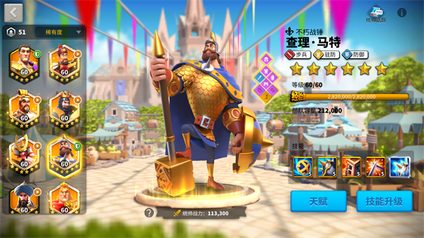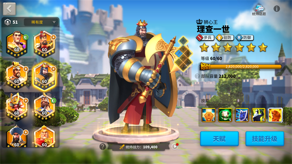 骑兵本身具备较高血量,因此可将天赋点更多倾斜于攻击力提升。