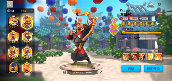 李成桂的群体攻击技能在多种战斗场景中表现突出,后期还可融入纯弓兵体系,构建高输出远程阵容。