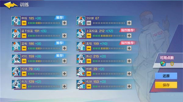 大前锋主要活动区域靠近篮下,建议优先强化上篮、扣篮能力。若偏好背身跳投,可适当提升中投属性;注重防守与篮板的玩家,则应重点加点篮板和对抗。跑动属性有助于执行挡拆与空接配合,可根据战术需求适度分配。