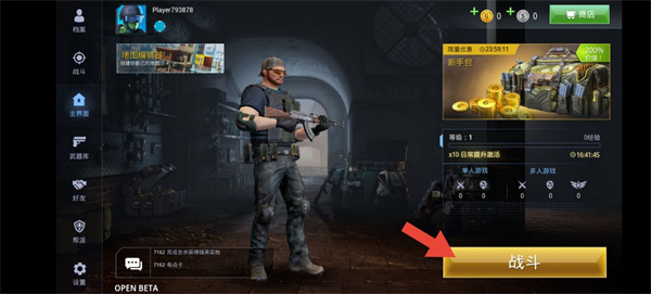 进入游戏主界面后,点击“战斗”选项。