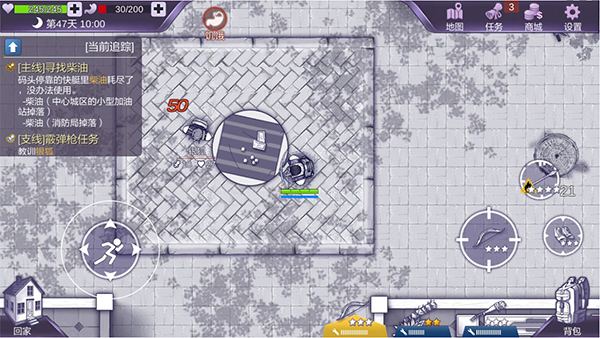 俯视视角下地图无战争迷雾,地形与敌人分布一览无遗。是正面强攻还是迂回周旋,全由玩家掌控。双摇杆设计支持移动与射击同步进行,即便武器蓄力期间,也能靠走位闪避丧尸攻击。