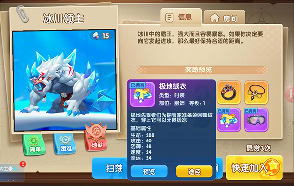 挑战强力BOSS可赢取大量奖励,包括炫酷时装、强力武器及实用道具。