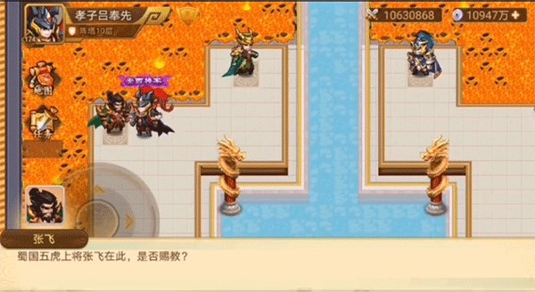 第六层为炎龙天火阵,破阵关键在于找出控制龙柱的规则并击败张飞,具体走位参考图解。