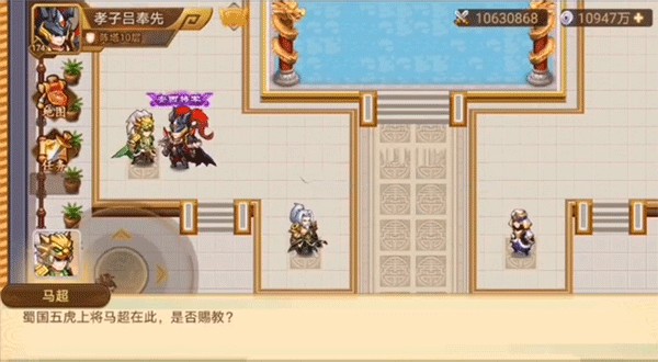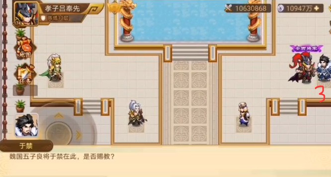 第九层破阵语为“贪狼武曲巨门廉贞”,按图中数字顺序依次行动,击败许褚后即可获取其专属奖励与功勋值。
