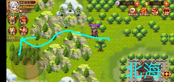 女娲石图纸入口位于北海左上角,非左侧,容易误入。推荐速度流冰龙开局控住诸葛果并优先击杀,其余敌人威胁较低,怪物速度约4.5万。