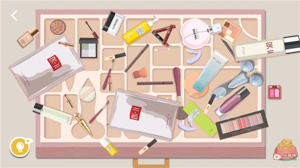 面对凌乱的化妆箱,各种化妆品散落各处,需要根据提示将它们一一归位。