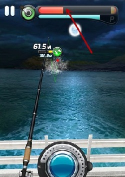 气槽满格时切勿松手,应立即向上滑动使鱼进入眩晕状态,此期间进度条暂停增长。