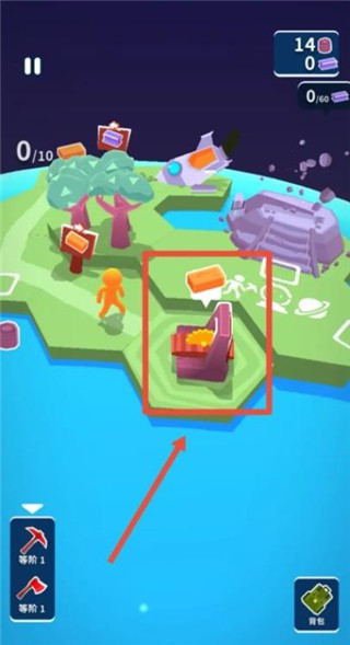 游戏玩法直观而富有层次,玩家需在圆形星球上挖掘资源、开采矿物、合成道具,通过开拓土地、搭建建筑、击败敌人等方式推进冒险进程。