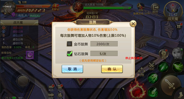 使用鼓舞可有效提升对天魔造成的伤害。