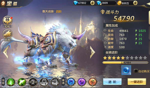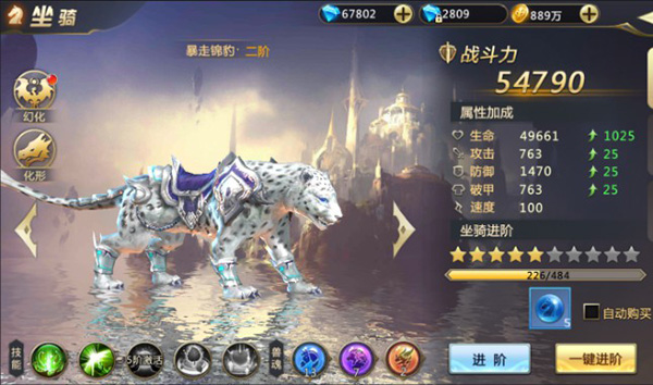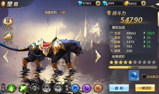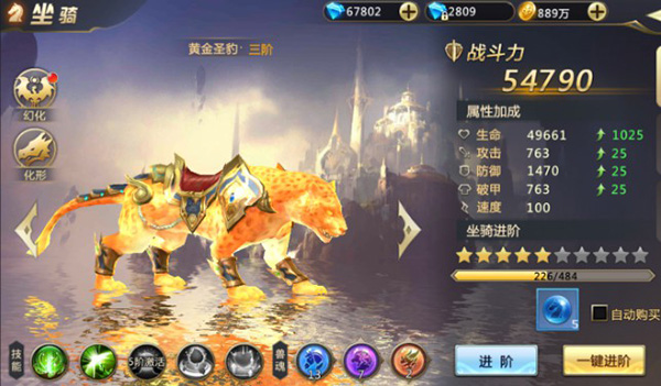 集齐所需材料后,点击“一键升星”即可完成坐骑进阶。