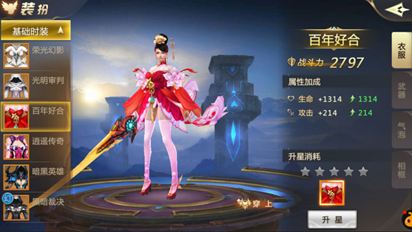 时装可通过专属道具进行升星,进一步强化附加属性;