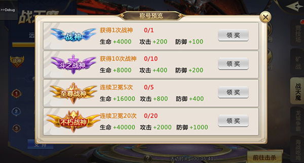 天魔降临,家园危在旦夕。战天魔活动于每周一、二、三晚间开启,每三天构成一个完整周期。在活动周期内成功击杀远古巨龙,即可赢取尊贵的“战神”称号。