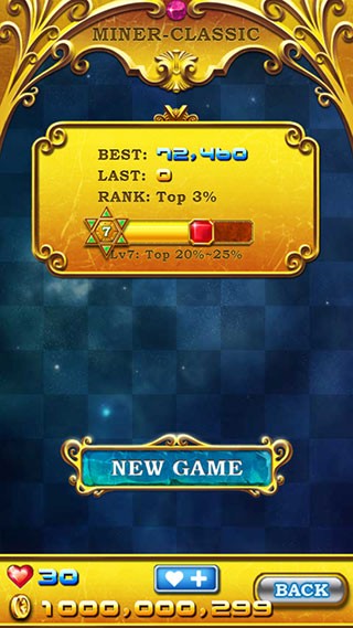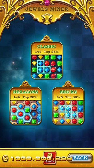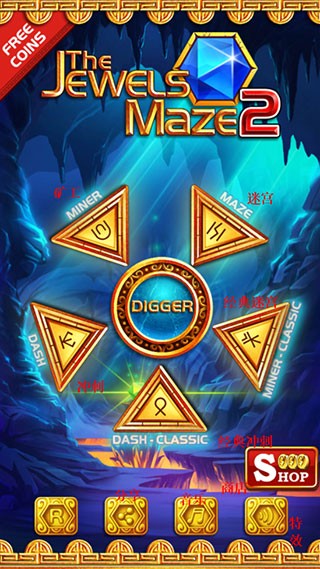 下载安装宝石迷阵2最新版后,进入游戏主界面,可自由选择矿工、迷宫、经典迷宫、冲刺或经典冲刺等多种模式开启挑战。