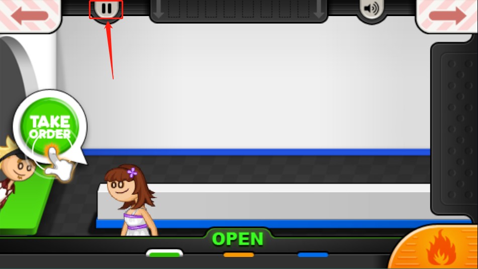 在老爹汉堡店游戏中,点击左上方的【暂停】按钮。