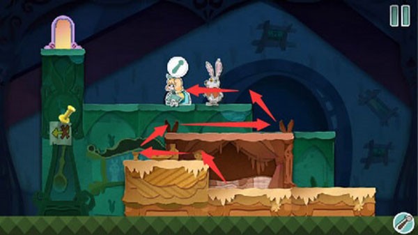 根据指引将红色方块向左拖动,拼合兔子形象并触发后续对话。