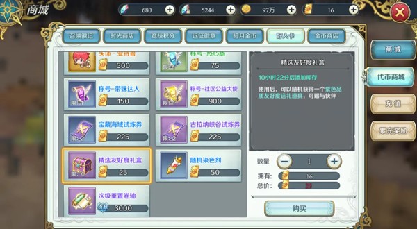 在商城的“好人卡商店”中可购买“精选友好度礼盒”,每日限购十次。
