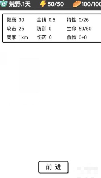 较高的初始攻击力让探索过程更从容,途中可拾取野果等食物维持生存,不至于因饥饿或战斗失利过早结束游戏。选定“愣头青”配置后,正式踏上流浪之路。