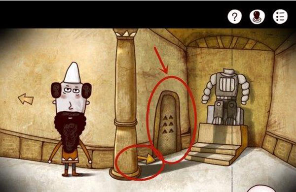 进入工厂内部,会看到一个新增的神秘三角块,将其拾起后前往神庙。神庙外蜥蜴所在的大岩石上也多出一块神秘三角块,一并收集。神庙大门密码未变,若遗忘可返回灯塔二层向船员询问。进入神庙后前往二层,拾取地上的箭头。