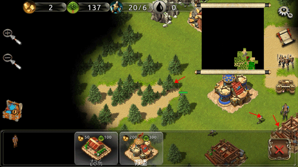 选中村民后,再点击目标树木或建筑位置,系统会自动执行建造房屋或采集木材的操作。