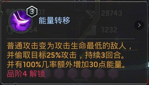三技能强化普攻,优先锁定敌方血量最低单位,并偷取其15%攻击力。由于高攻角色通常血量偏低,该机制能最大化艾莉亚的后续输出能力。