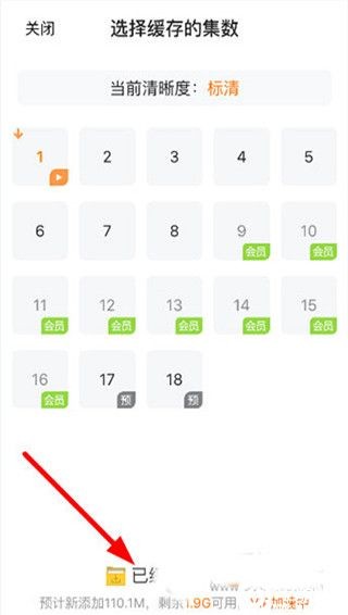 找到目标视频,点击右下角的下载图标,唤出本地缓存选项。